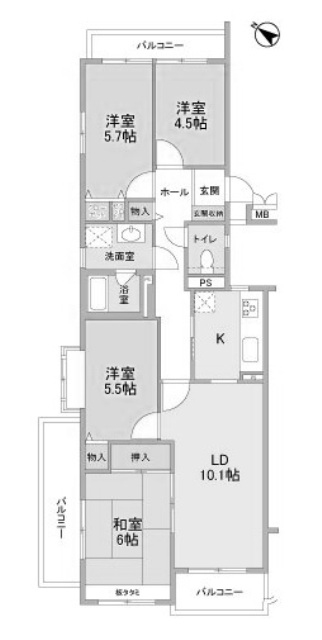 ご紹介するお部屋は、3方向にバルコニーがある角部屋の4階部分。